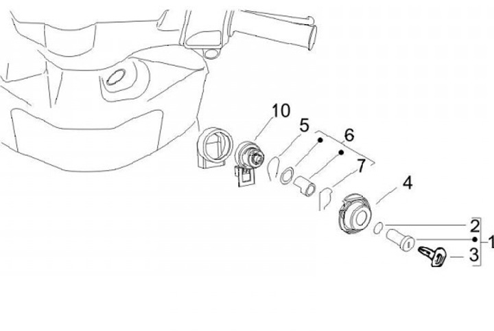 Tändningslås -PIAGGIO- Gilera ICE, Runner50-200, Piaggio Fly, Hexagon GT-GTX, Hexagon LX-LXT, Liberty, NRG Power, Skipper, X7, X9, Zip (från år 2000), Vespa ET2, ET4, LX, LXV, S