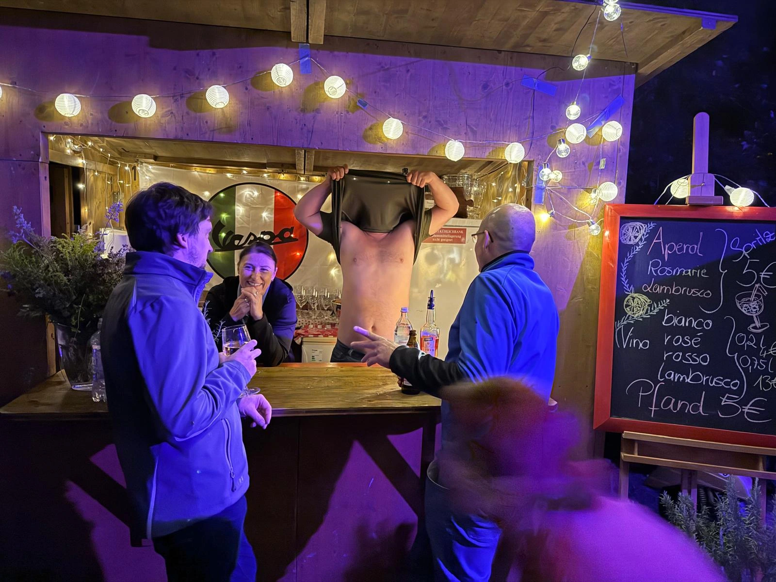 Platsen började sakta men säkert likna ett litet Wacken, och på arrangörernas ansikten syntes oron allt tydligare. Men Vespa-familjen lät sig inte nedslås. Från alla håll hördes kommentarer som: «Ingen fisk har någonsin tagit maten ur handen på oss! Kom igen nu!» Och faktiskt – humöret förblev på topp.