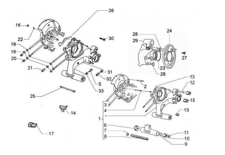 Förstärkning av extra axelfäste / motorhus -CMD Mighty Kong CNC- Vespa Largeframe PX, T5 (VNX5T), GT125 (VNL2T), GTR125 (VNL2T), TS125 (VNL3T), Sprint150 (VLB1T), Rally180 (VSD1T), Rally200 (VSE1T)