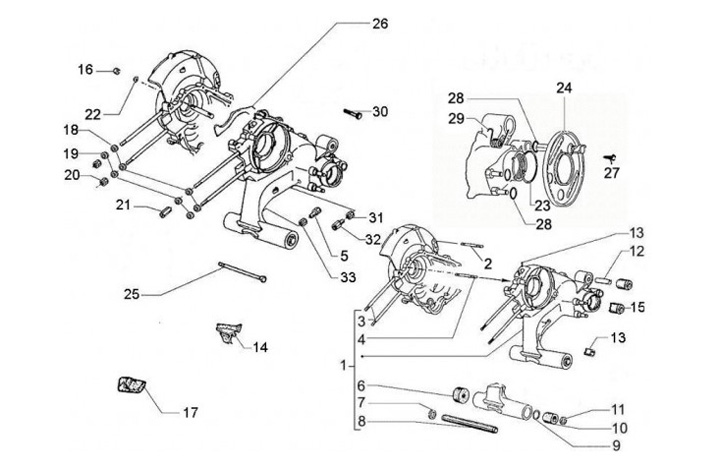 Ljuddämpande blockbussning motor -PIAGGIO- Vespa PX80, PX125, PX150, Sprint150 (VLB1T), TS125 (VNL3T), GT125 (VNL2T), GTR125 (VNL2T), Super, GL150 (VLA1T), VNA, VNB, VBA, VBB