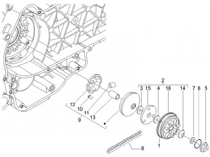 Polea fija -PIAGGIO- Vespa GT L 200, Gilera Runner 1 180, Runner 2 (RST) 200, DNA 180, Piaggio Beverly 200, Carnaby 200, Hexagon 180, Liberty 200, X8 200, X9 180, X9 200, X9 Evo 200, Aprilia Atlantic 200, Scarabeo 200, Sport City 200, Sport City
