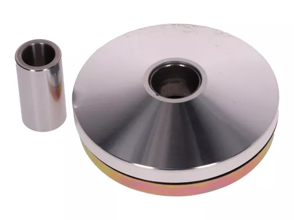 Variomatik in OEM Qualitat als Ersatzteil für verschiedene Kymco, SYM, Honda sowie Daelim Motorroller mit 14mm Kurbelwellenstumpf. In der Variomatik ist ein Satz Gewichte (16x13 7,5g) enthalten. Die Variomatik ist mittels einer Bleckkappe gedrosselt. Wird die Bleckkappe demontiert, ist die Variomatik entdrosselt.