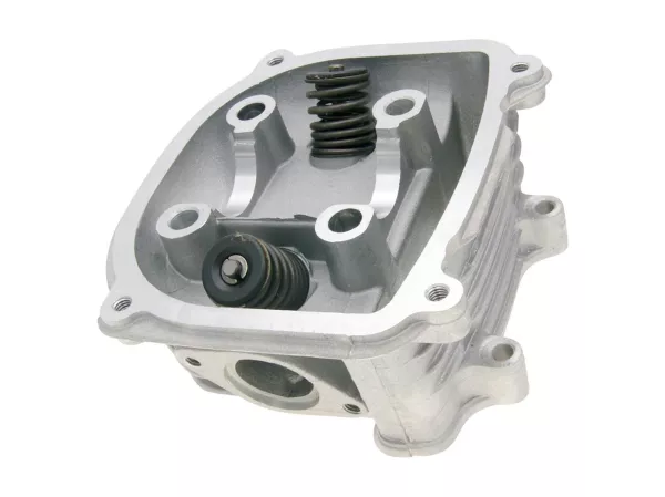 Kompletter 150ccm Zylinderkopf mit montierten Ventilen. Passend für alle GY6 150ccm Motoren der GY6 Baureihe 157QMJ (oder als Upgrade bei Verwendung eines 150ccm Big Bore Zylinders auf 125ccm Fahrzeugen). Der Zylinderkopf wird ohne Anschluss für das Sekundärluftsystem geliefert. Ein ggf. vorhandenes Sekundärluftsystem wird damit außer Kraft gesetzt und die damit entstandene Leistungseinbuße ist aufgehoben. Verwendbar in beiden Motorvarianten mit und ohne SLS (Sekundärluftsystem). Lieferumfang wie abgebildet.Hinweis: Nach Montage der Kipphebelbrücke immer das Ventilspiel überprüfen.